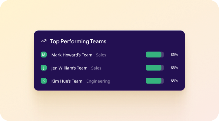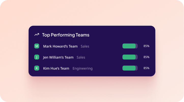Compare teams side-by-side across engagement, performance, and wellbeing metrics to identify best practices.